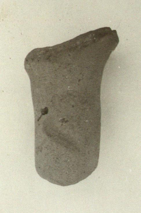 | Description: | Broad, level; start of right angle curve(?). Coarse red clay; grey at core. Leaf-shaped impression, carelessly set; doubled; on observe variation of square and lunate. Cf. SS 3215. | |