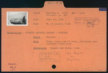 | Description: | Angular typical handle. Fine clay, light red at core, yellowish near surface; cream slip. Impression single and sharp; worn. | |
