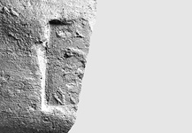 | Description: | Rising; ribbed; very broad; broken before curve. Micaceous, rather coarse clay; brownish with red streak around greyish core. Only left end of the impression preserved. Broad. | |