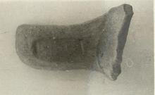 | Description: | Knidian type, a little twisted. Clay similar to Knidian, yellow at surface. Traces of slip very slight or lacking. Impression incomplete below; much worn. | |