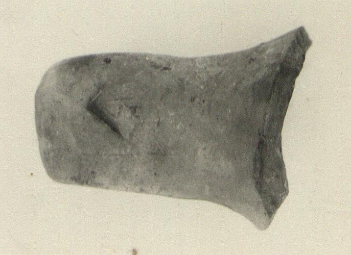 | Description: | Typical shape. Typical clay. Impression set obliquely so that only double axe and part of the bottom is preserved. From same die as SS 353. | |