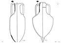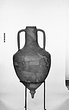 | Description: | Fragmentary amphora with most of one handle; handle broad, descends from upper attachment; preserved almost to lower attachment. Whole jar, "tip extends ca 0.055 below [...], but this merges; into tip with a taper; groove 0.083m. below rim"(VG). Capacity (revised from wheat VG 1939) 39.700. Rather coarse red clay with gray core; slightly micaceous. Impression partly incomplete and much worn. | |
