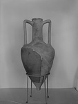 | Description: | Complete neck of amphora and rim with part of shoulder, and both handles;mended largely complete, restored in plaster; no groove, rather flat topped underarm and rim for period. Capacity: (revised from wheat VG 1939 of 23.900) 24.400. Rose. | |