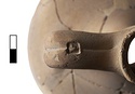 Fractional Rhodian amphora; substantially preserved to just below shoulder; thin cylindrical neck with narrow rolled l;ip; double handles made of two separate rolls of clay, gentled arched. Gradual slope from neck to shoulder.
