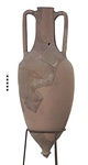 | Description: | Fragmentary neck and shoulder of amphora with one complete handle; much more added from sherds, including the second stamped handle SS 7929; made up complete, neat collared toe; no incised on neck. Capacity: (poly 12.vi.78) 29.660. rectangular stamp; dipinto in black on shoulder. | |