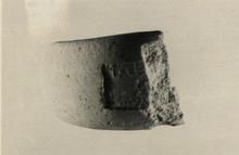| Description: | Curve fragment. Left end of stamp only; device, cluster; letter above and below; retrograde. | |
