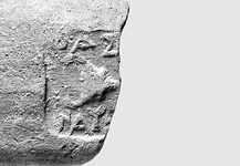 Rectangular stamp broken off at right; line above and below symbol; boukranion.