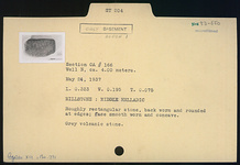 | Description: | Roughly rectangular stone, back worn and rounded at edges; face smooth worn and concave. Gray volcanic stone. Middle Helladic. | |