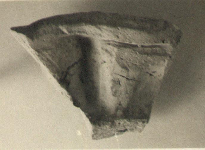 | Description: | One edge preserved; elsewhere broken all around. Perhaps part of a seated female figure in a plain chiton (?) Coarse light red clay. | |