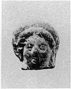 | Description: | A woman 's head wearing a thick wreath. Small hole from below. Red clay. | |