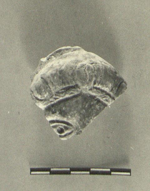| Description: | Upper part of head and hair only preserved. Head with slightly waved hair under a heavy cap or headdress. Much paint: yellow, red and black. Light red clay; white slip. | |