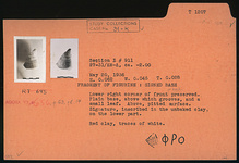 | Description: | Lower right corner of front of signed base preserved. Plain base, above which grooves, and a small leaf. Above, pitted surface. Signature: Α Φ Ρ Ο, inscribed in the unbaked clay on the lower part. Traces of white paint. Red clay. <graphic> ADDENDA: Lower right corner of front or back preserved. | |