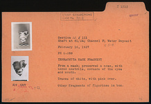 | Description: | Preserved a nose with bored nostrils, corners of the eyes and mouth. Traces of white paint, with pink over. | |
