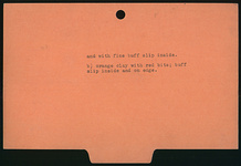 | Description: | Fragment a) part of one side, with raised edge (broken off) preserved. Along the side, ivy vine; beside in drapery (?) Heavy fabric. Pink clay, buff at surface and with fine buff slip inside. Fragment b) from a very similar mould; part of the raised edge preserved, and a bit of vine inside it. Heavy fabric. Buff slip inside and on edge. Orange clay with red bits. | |