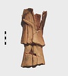 | Description: | Head and shoulders, much of upper body, left arm, and legs from knees missing. Figure wearing a short chiton reaching only to the knees. It has an overfold and is girt diagonally, over the left shoulder and with a band under the left arm. Across the back, as if held in place by this arrangement, is a cloak which is drawn round to envelop the right arm which hangs at the side, the hand slightly outstretched, and the drapery, which conceals it, falling in a heavy fold at the side. Fragmentary. No certain remains of white color. Hard red clay; red to buff surface. Cf. Head T 1409. | |