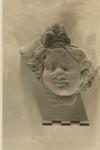 His curly hair is pulled up into a top-knot over his forehead, which is crowned by a petal braced by volutes (?) (equal to Harpokrates ornament ?).