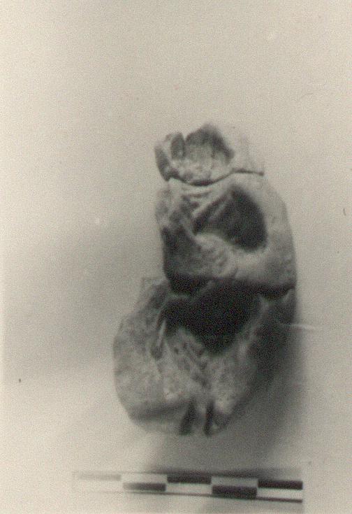 | Description: | Nearly complete mould. Chipped at top and along one side. ADDENDA: Veiled over nose by thin himation, which is wrapped round her. | |