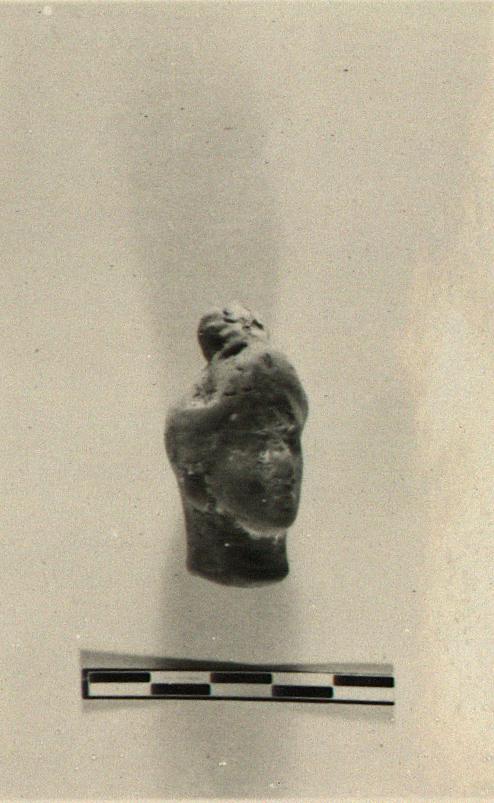 | Description: | Broken below neck. Chip missing from forehead and right eye. Large tuft of hair at top of head at front. Earrings in ears. Traces of white on face and neck; of red on tuft. | |