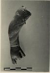 | Description: | The right arm, from the shoulder of a large figurine. Middle fingers missing at knuckles. The arm is outstretched; the hand clasped to grasp some object, a hole for which is pierced through the hand. A tight sleeve reaches to the wrist. Orange-red clay, red surface. | |