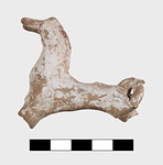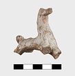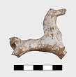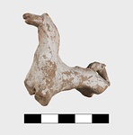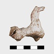 | Description: | The horse seems to have been running. Legs missing. It has lifted tail. Spirited effect produced by tossed back head, open mouth, and exaggerated modelling of neck. White with considerable red paint. Pinkish buff clay. | |