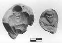 | Description: | The upper part of a mold for a bearded figure with mask-like head, wearing a speckled garment (Papposilenus). He is bending forward and clasping some object (wine-skin ?). Careful work. Fine pinkish clay. Publication: before 350 B.C. Cf. Dimitrakopoulou (2024), no. A224, pp. 256-257, fig. 54. | |