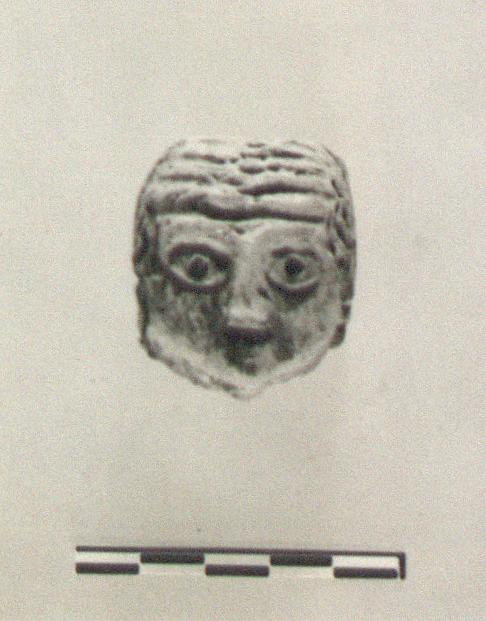 | Description: | Front of head only preserved. Hair and features rendered by deep incision. Pupils indicated by projections. No trace of color. Red clay. | |