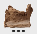 Second fragment, joining, found. Full height of mold preserved; broken at left, and at lower right.