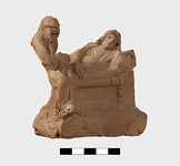 Description:   Part of lower edge preserved, with one leg of a low table or couch.