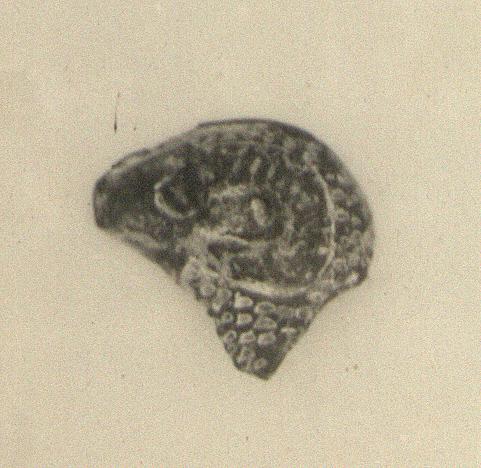 Description:   Fragment of left side of head of ram figurine.