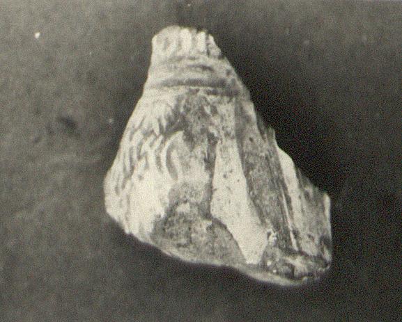 | Description: | Fragment from front and right side of plastic dog. Broken above collar and at legs. Mould-made, hollow. White paint with pink and yellow vertical stripes. Bright pink clay. | |