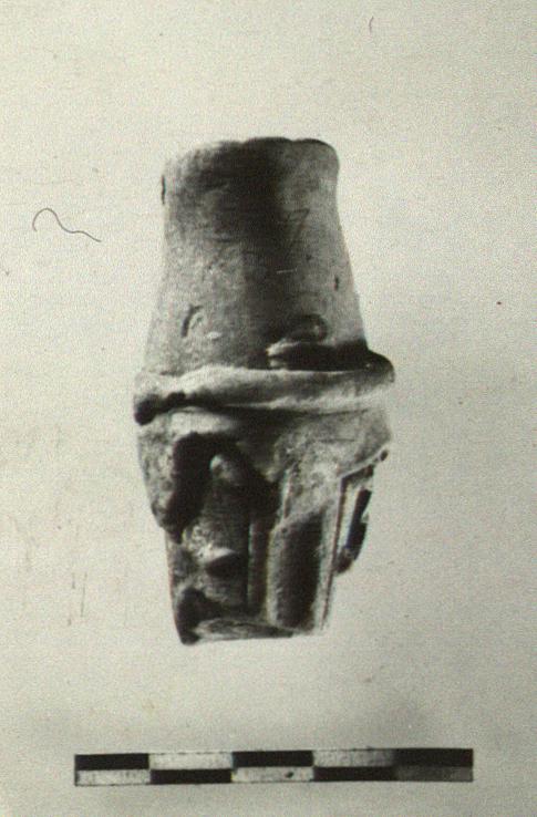 | Description: | Preserved from knee to above ankle. A male leg wearing an elaborate boot with studs and flaps. Traces of white. Solid. Buff clay. | |