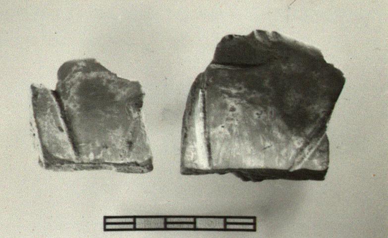 Fragment a), curves markedly upward, but seems to have rested flat on center.