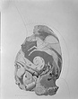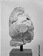 | Description: | Mended from many pieces. Surface greatly damaged and in many places entirely gone leaving a yellow-greenish core with small dark pits in it. Nose, part of upper lip, lower part of face including the beard, cheek-pieces, front part of helmet over forehead, most of the base of the crest, greater part of the left side, pieces from the neck-piece missing. Very little of beard and moustaches left. Eyebrow, eyelashes, pupil, iris in light brown paint. The background of the helmet is covered with the same colors, except of one Pegasus on each side and a reserved band at its lower edge on the neck. Maender on the base of crest. Two holes on the right cheek and part of another on the left show where the cheek-pieces were attached. A small piece of clay above the nose near the left eyebrow suggests that there was probably a piece of the helmet coming down over the nose, a rather unusual feature for the Attic helmet. The helmet came down low over the eye brows. Excellently finished surface of ivory color. Cf. T 3282. | |