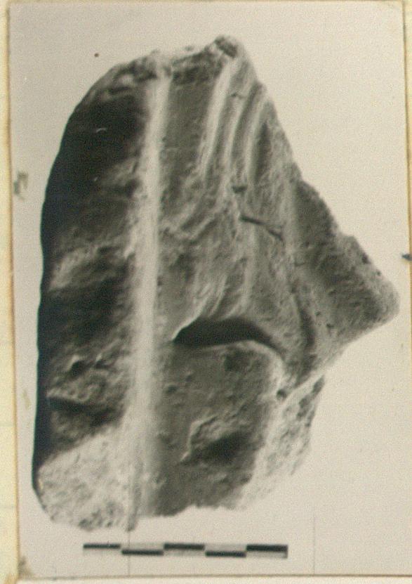 | Description: | Fragment from side, bordered by raised edge, preserving a little fluttering drapery. Perhaps a dancing Maenad (?). | |