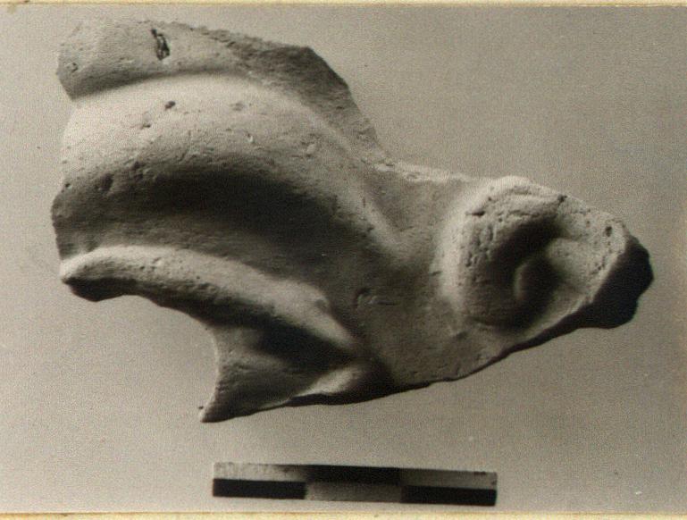 | Description: | Part of left eye, eyebrow and top of ear preserved. Pinkish-buff clay, light at surface | |