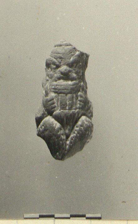 | Description: | Silen in a fur suit, wearing a fillet, sitting cross-legged, drinks from kantharos held in both hands. Remains of white, pink and red paint. | |