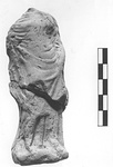 | Description: | Mended from two pieces. Head missing. Moulded, hollow. Woman standing with right arm bent upward, left arm at side holding drapery. Dressed like T 3799. Weight on left leg and left hip thrust outward. Back unmodelled. Modelling very cursory. Soft pinkish-buff clay. | |