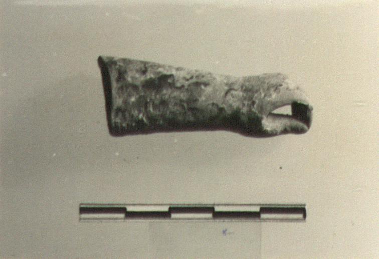 | Description: | Forearm and hand preserved intact. Non-articulated fingers curved to meet tip of thumb. Traces of red paint. Buff clay. | |