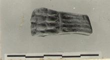| Description: | Lower part of leg preserved. Furniture leg with foot formed by four-clawed animal paw. Four vertical grooves run above foot. Back plain. Beige clay. ADDENDA Others in containers. | |