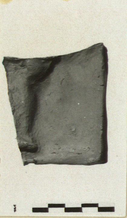 | Description: | One corner remains. Part of one figure, a lower leg and back of a foot. Coarse orangish clay. ADDENDA May 1978: eye and snout of a boar. | |