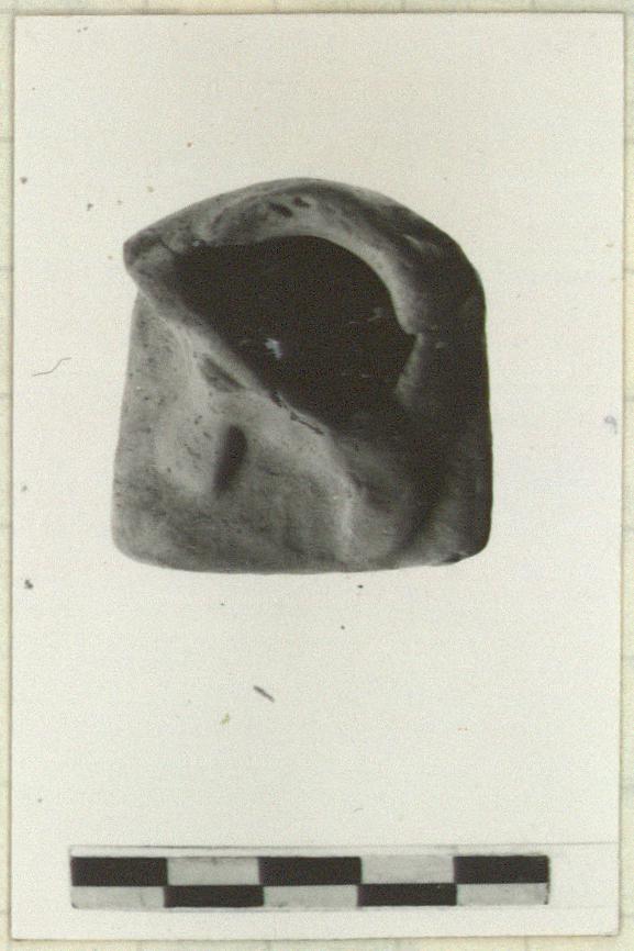 | Description: | Broken at ankles. Feet of a figure standing on a plinth apparently wearing long drapery. Left foot advanced. Orange to yellow clay. Cf. T 4042. | |