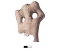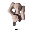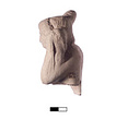 | Description: | Head, two arms, one breast and upper portion of back preserved. Very worn. Both arms bent and holding hair. Traces of paint on face and back. Aphrodite (?). Part of circular vent in back. | |