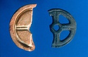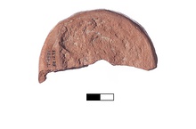 | Description: | Mold broken in half. Impressions for upper half of outer ring and one complete spoke preserved. Reddish pink clay. Mold for T 4370. | |