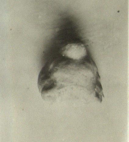 | Description: | Head of dog. Broken at the neck and in back, and the ears chipped. Heavy fur indicated by a lumpy surface at the back and sides. Mould-made, hollow, with a join across the ears. Pinkish buff clay, perhaps slipped. Cf. T 3075. | |