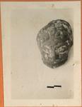 | Description: | Front part of head of large figurine. Broken at the neck, and along the edge of the headdress. The face has very large eyes, a long blunt nose, and a slit-like mouth. Across the forehead the hair is arranged in a row of large curls or waves; behind this arrangement, rises a high headdress, of which only the edge remains. Remains of white paint on face and hair; purplish red on headdress. Coarse work; mold made; hollow. Pinkish buff clay. | |
