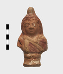 | Description: | Draped and hooded figure. On the head a small handle like the handle of a lamp. A loose object inside suggests that the bust was a rattle. Traces of color: eyes and pedestal white; drapery, purple red; face, orange red. | |