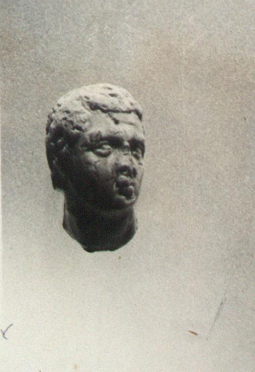 | Description: | The nose broken off. The height apparently complete. The head is bent sharply to the figure 's left. Thick lips; bar of Praxiteles. The undersurface, at the base of the neck, is finished smooth and has ample traces of red paint. Traces of white paint on features and hair. Good work. ADDENDA: The undersurface is finished smooth and has ample traces of red paint for application to the body. Made with two moulds. | |