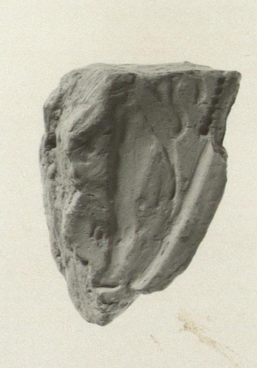 | Description: | Broken at top and left side, and battered at the bottom. Preserved is the lower body of a standing figure of Herakles, facing left, and wearing a lion 's skin. The mold is for a plaque in low relief. Brownish buff clay, flaky, slightly micaceous. | |