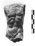 The left leg and the left arm were raised, and the upper part of the body turned toward the left. Heavy muscles, rather coarsely modelled.