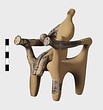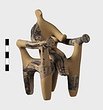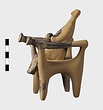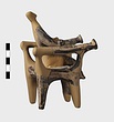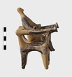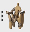 | Description: | a) Left arm of a figure. The hand is clasped around a large ball; the fingers are incised. On the sleeve, dots between bands. b) Leg of a figure. It belongs and is joined to T 762. (see T 762). Dull black glaze. Grayish clay. | |